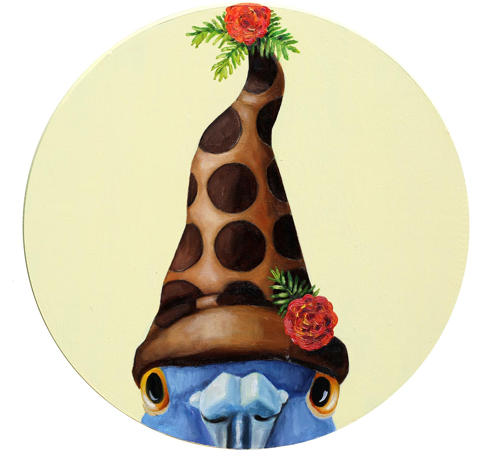 Turtle with Macaroon Crown No.2 Oil on wood panel