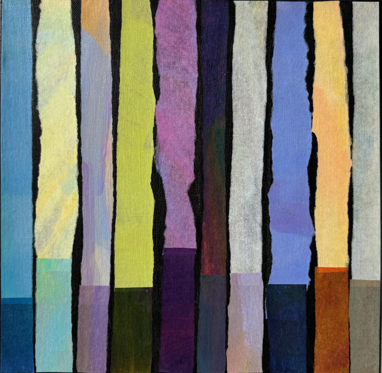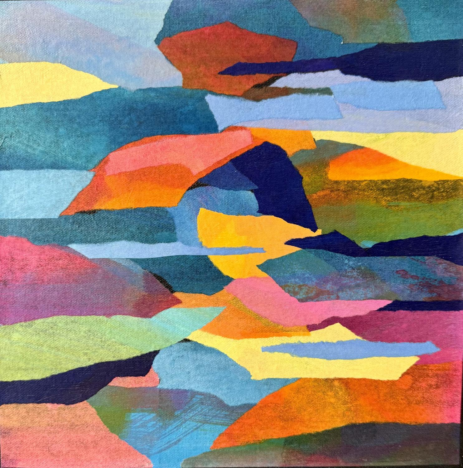 Ellen Globokar grew up in western Michigan with a pencil and a sketchpad close at hand. From a very young age, she was commissioned to draw portraits and displayed her watercolors at juried art shows. After two decades working in politics and government, she returned to her passion for art. Citing Impressionism, Abstract Expressionism, and the Bay Area Figurative Movement as her main inspiration, Globokar paints alla prima, capturing tranquil views of marine sunsets, lush gardens touched by soft rays of lavender light, and solitary rural landscapes. Her collages, made of scraps of hand-dyed Japanese paper, are also inspired by the colors and atmospheres of the seashore and countryside. Different depths and textures are achieved by arranging pieces of varying thickness and shapes, while metallic paint is added for a shimmering effect. Her work emanates a soothing contemplative beauty, an intimate communion with nature, offering a much-needed escape from the mundanity of life.