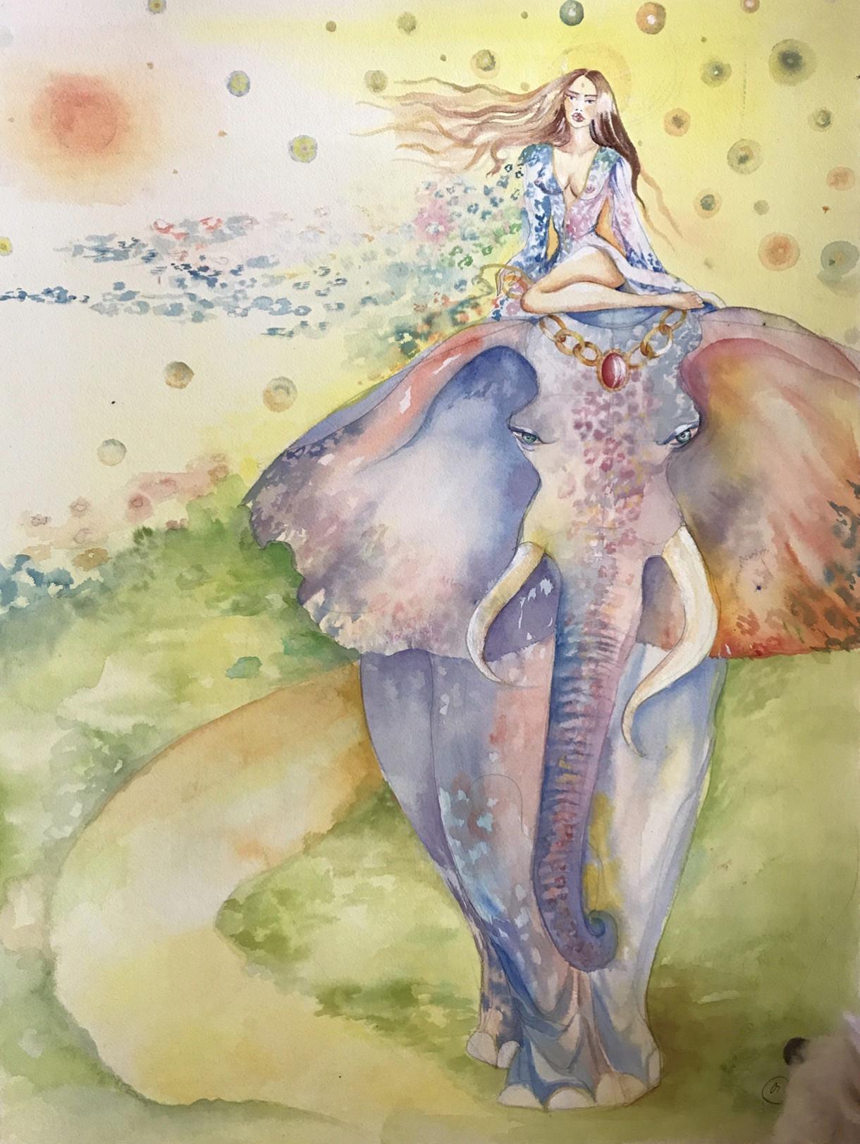 I am self employed, I am a passionate person who loves life, nature, animals, colors. I try to put them all in my artwork. I use water colors, acrylic ink. Also, I add a lot of materials in my paintings, such as gold, crystals, stones, textiles. I utilize whatever feeds my creative imagination. I mix them all together. My paintings are an expression of my life and my feelings, so I put a lot of love and time into each of my art pieces.