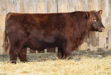 One of the top gaining bulls on test this winter indexing 132. Born unassisted and a heifer’s first calf. Square made, deep and solid footed and carries the Elevate stamp. Dam-64L comes from a long line of productive Missy cows.