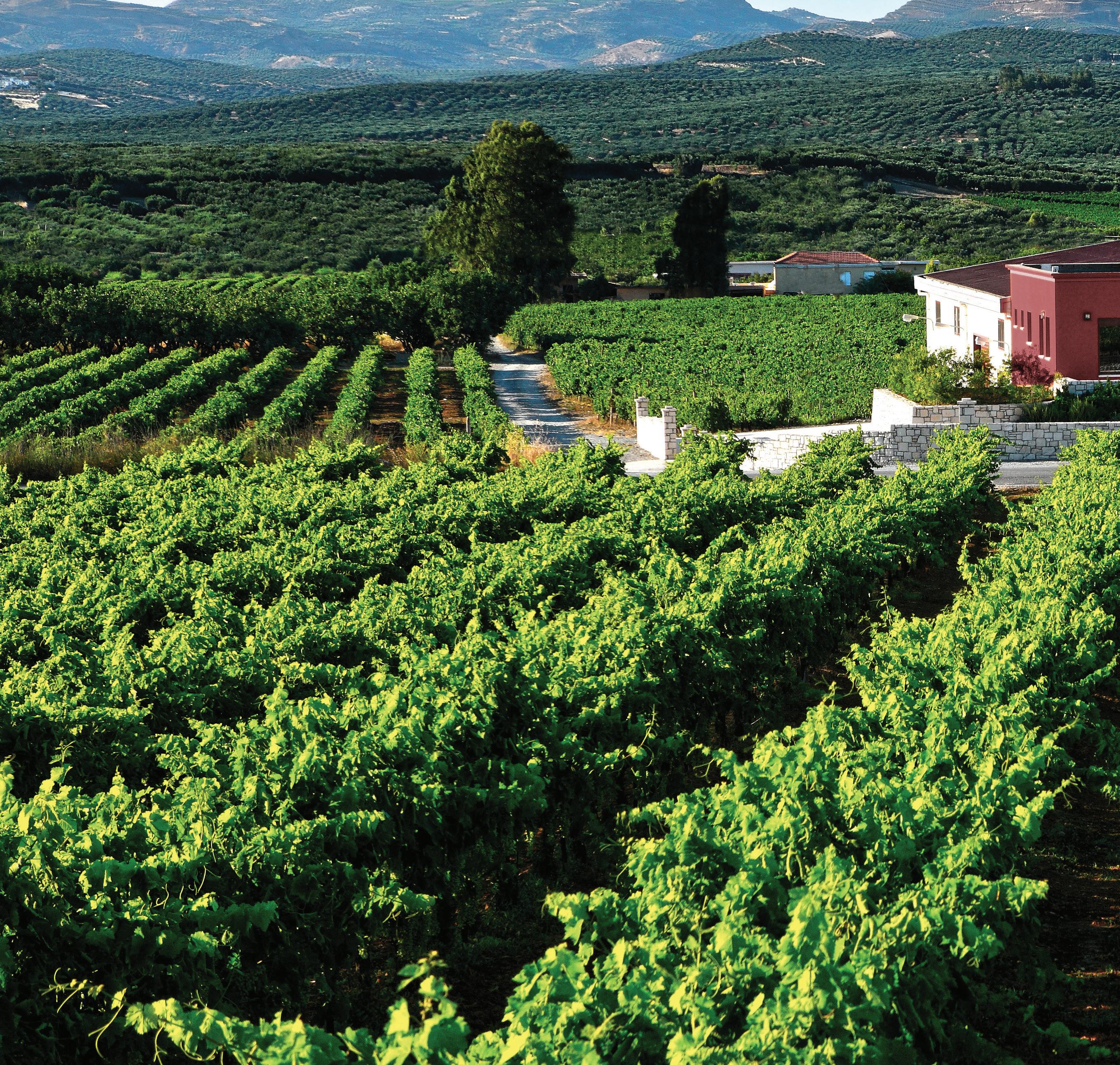 ιδιαίτερα τοπογραφικά και γεωλογικά χαρακτηριστικά του αμπελώνα προσφέρουν χαρισματικές καλλιέργειες σε μια μεγάλη γκάμα γηγενών ποικιλιών (Mοσχάτο Σπίνας, Βιδιανό, Βηλάνα, Θραψαθήρι, Ασύρτικο, Λιάτικο, Κοτσιφάλι) και διεθνών ποικιλιών (Chardonnay, Cabernet, Merlot και Syrah).