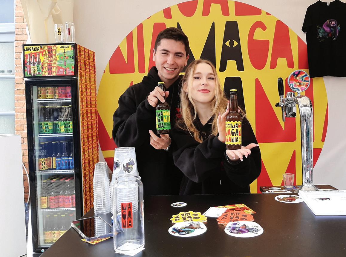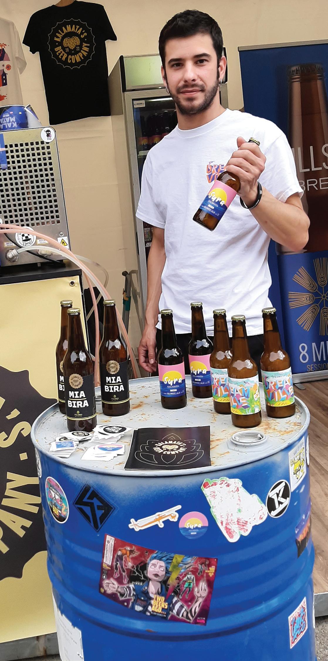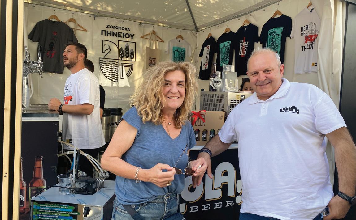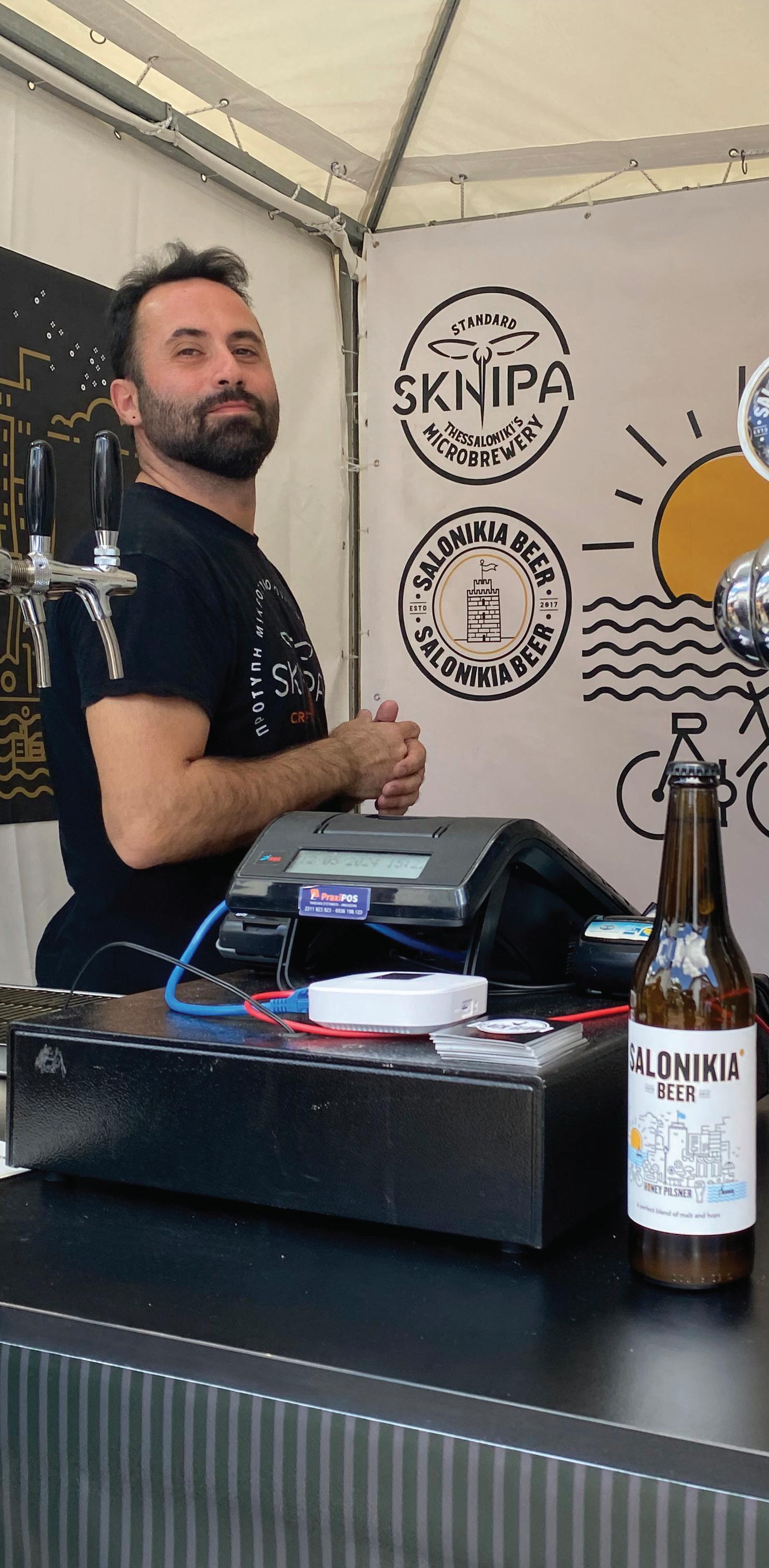 35 BEER & BRUNCH ΙΟΥΝΙΟΣ 2024 Ο Γιώργος Πέτρου, διευθύνων σύμβουλος της Ζυθοποιίας Πηνειού, με τη σύζυγό του στο περίπτερο της πρώτης μικροζυθοποιίας της περιοχής της Λάρισας , η οποία από την ίδρυσή της μέχρι σήμερα έχει συμβάλλει στην καθιέρωση της κουλτούρας της μπύρας στην ευρύτερη περιοχή. Εκτός από το brand Sknipa, ηπρότυπη Μικροζυθοποιία Θεσσαλονίκηςλάνσαρε το 2017 και ένα δεύτερο, το Salonikia Beer. Η 608 Brewing Company του Γαλατσίου, εμπνευσμένη από το ομώνυμο λεωφορείο, που εκτελεί τη γραμμή Ζωγράφου-Γαλάτσι.
