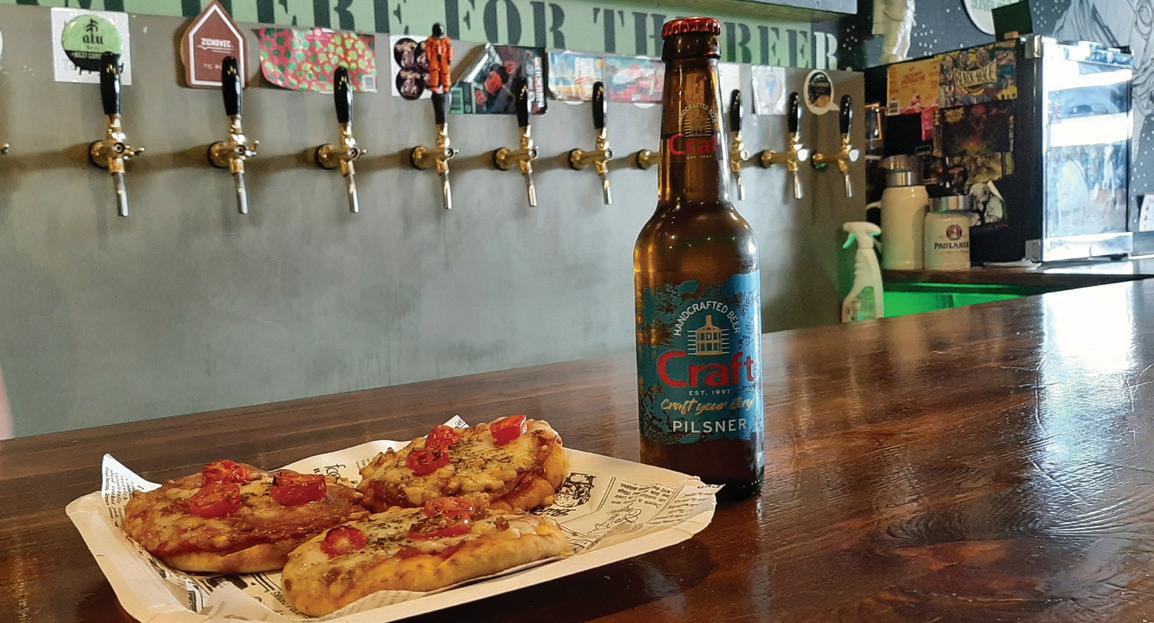 στον Κάλαμο και την ικαριώτικη Slow Down. Τι τις κάνει να ξεχωρίζουν; Πολύ μεράκι από χέρια ανθρώπων που αγαπούν την μπύρα και αποτελούν την κινητήριο δύναμη για την εγχώρια -και όχι μόνο- μικροζυθοποιία. Αξίζει να σημειωθεί ότι καμία σχεδόν μπύρα όμως δεν παραμένει διαθέσιμη σε μόνιμη βάση, το στοκ είναι μικρό για να διατηρούνται πάντα φρέσκιες στη σύγχρονη υποδομή που έχει φροντίσει να διαθέτει το Tapfield για τα βαρέλια του. Την ίδια φροντίδα θα απολαύσει κανείς στο Tapfield και σε ό,τι αφορά τις γεύσεις που συνοδεύουν την μπύρα. Τυρί Μετσοβόνε, σαλάμι από τη Θράκη και ντοματάκια από την Κρήτη στις επιλογές, που επιμένουν εγχώρια και εστιάζουν σε προϊόντα μικρών Ελλήνων παραγωγών, ενώ υπάρχει δυνατότητα να καλυφθούν και οι vegan μπυρολάτρες, μέσω του δημιουργικού οίστρου του Πασχάλη Χριστόφιλου, που όλα τα ψήνει στο φούρνο. Σύμφωνα με τον Μίλτο Πίσκοπο, όλα καλά και μπύρα και γεύση αλλά την ιστορία, ακόμη και του ζύθου, χτίζουν οι παρέες. Γι' αυτό και το Tapfield, φιλοξενεί πολύ συχνά στο χώρο του, στα ψυγεία του και στις κάνουλές του ελληνικές και ξένες μικροζυθοποιίες για να παρουσιάσουν τη δουλειά τους με πιο πρόσφατη επίσκεψη αυτή των Πολωνών Browarny. Ο 1 Με μια Seven Island Beerserker στο ποτήρι του Αντώνη Πανάγου (αριστερά) και μία Septem Mylos για την Ειρήνη Βλάχου ξεκίνησε τη γευστική μας περιήγηση στο σύμπαν του Tapfield ο Μίλτος Πίσκοπος. 2 Μια δροσιστική και ελαφριά Lager Pilsner αντισταθμίζει τη λιπαρότητα της πίτσας. 3 Με τις 23 κάνουλές του το Tapfield προσφέρει πολλαπλές επιλογές σε μπύρες, όλες με τη σφραγίδα του πολυπράγμονα ιδιοκτήτη. 4 Tapas, bar food, μεζέδες, δεν έχει σημασία πώς θα το γράψεις. Bar bites λέει ο Μίλτος αλλά σίγουρα είναι νόστιμο το φαγητό, που επιμελείται ο Πασχάλης Χριστόφιλος. Η μπύρα είναι όπως το σύμπαν, ένα πεδίο που παραμένει πάντα ανεξερεύνητο. Σε αυτό κινείται και ο αστροναύτης που δεσπόζει στον τοίχο του boutique ναού της μπύρας Tapfield, ως άλλος ένας γνήσιος μπυρολάτρης ΑΓΙΣ ΤΣΙΜΠΛΑΚΗΣ ΖΗΣΗΣ ΠΑΝΑΓΟΣ