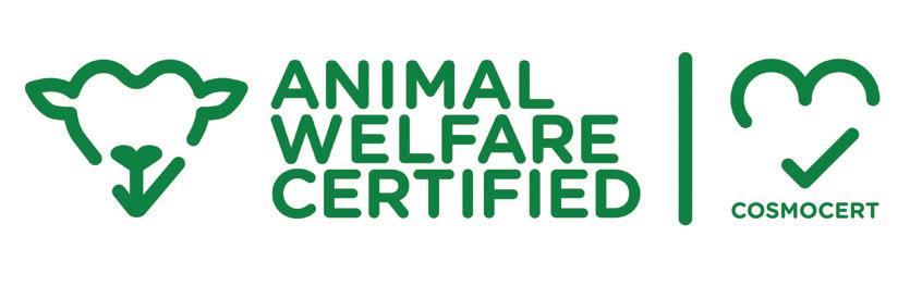πιστοποιητικό καλής μεταχείρισης και ευζωίας των ζώων από τον οργανισμό Πιστοποίησης Cosmocert (Animal Welfare Certified).