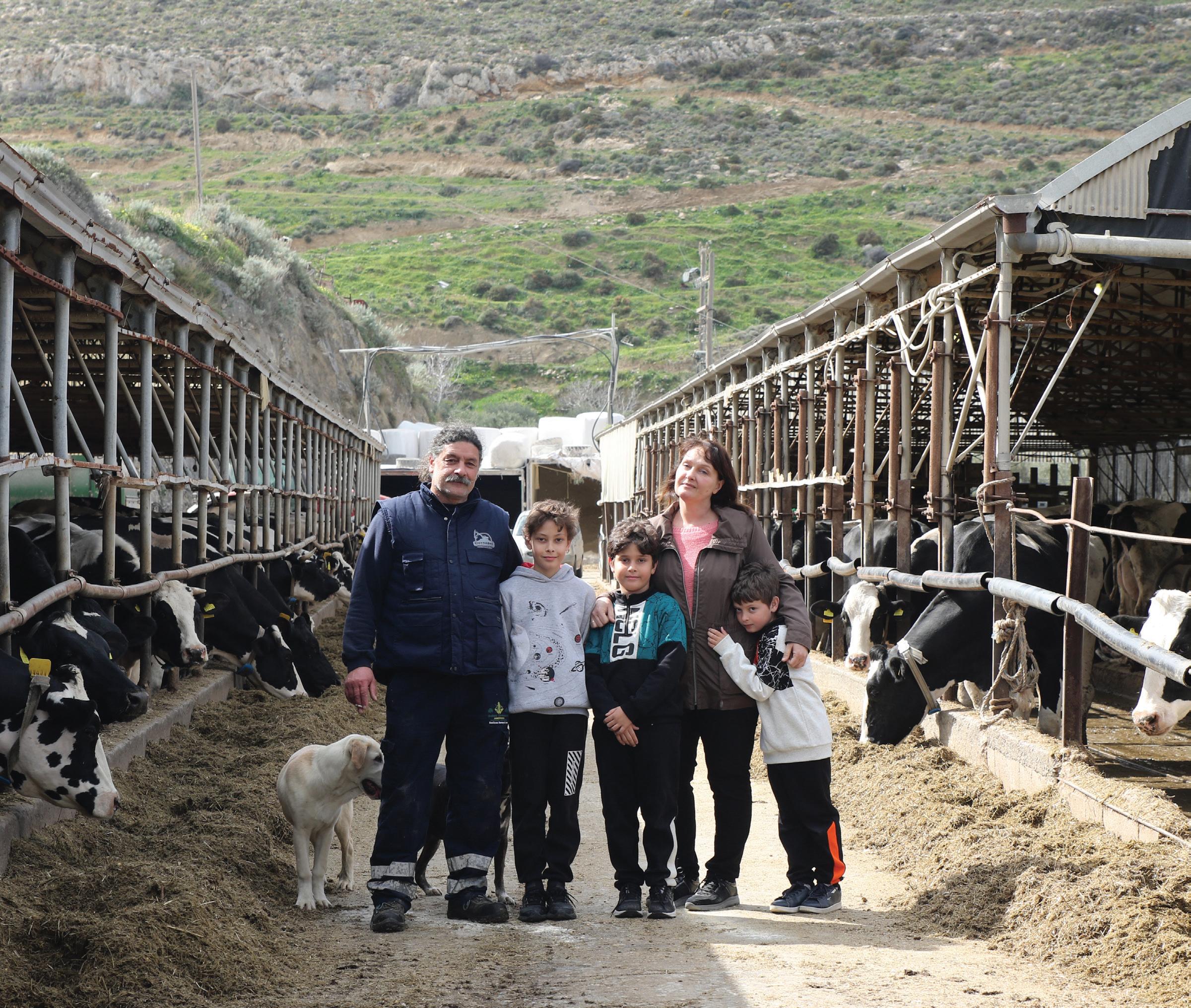 Τα ηνία του Τυροκομείου Αρκαδία κρατά σήμερα η τρίτη γενιά, τα αδέλφια Θύμιος (επάνω δεξιά), Πάνος και Νάντια Μπαζιωτάκη, με τη υποστήριξη του πατέρα τους Θανάση (επάνω αριστερά).