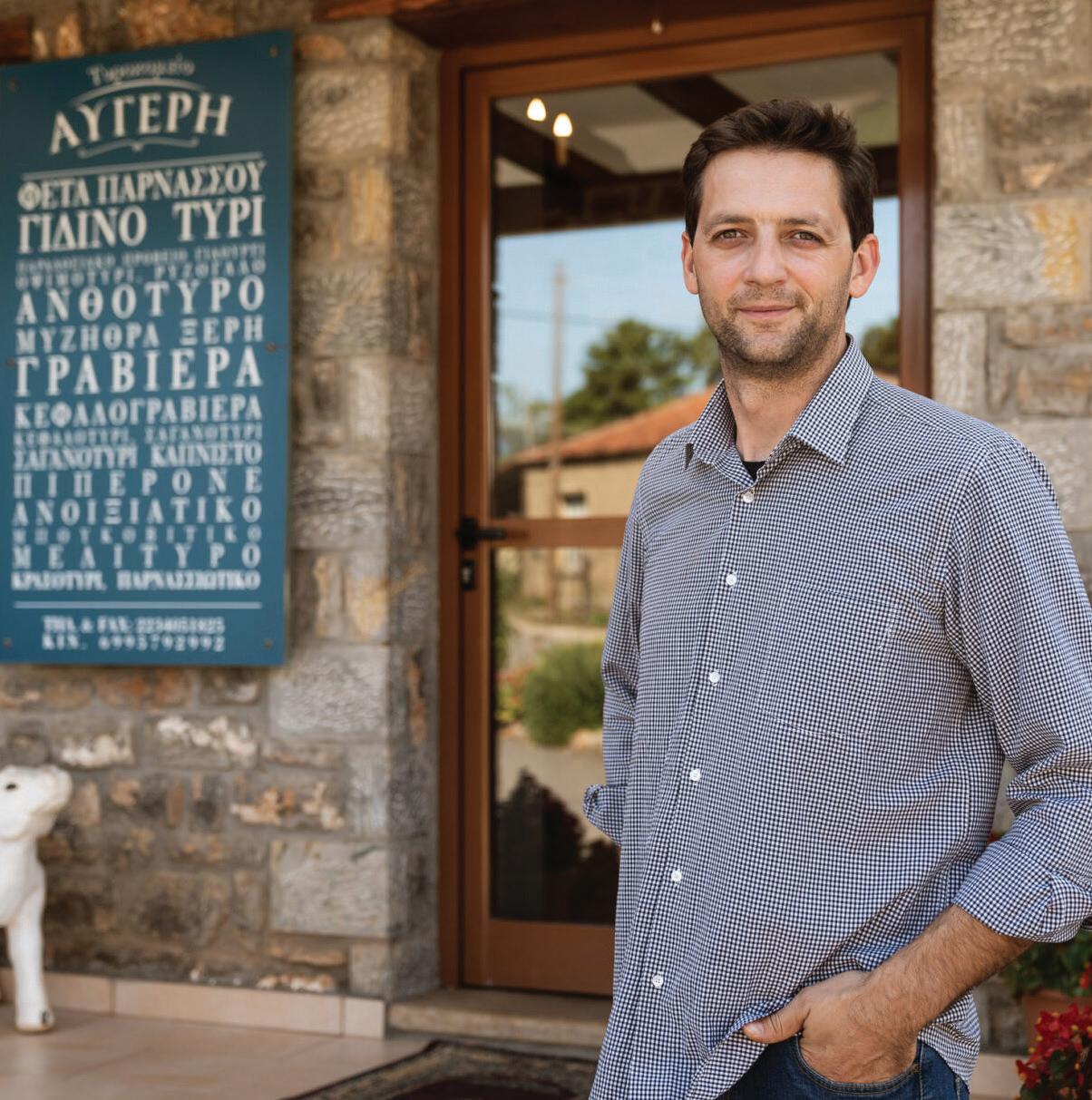 39 Γιώργος Αυγέρης Αγρότης, κτηνοτρόφος και τυροκόμος στο Πολύδροσο Φωκίδας, βρίσκεται σε αυτό το στάδιο της ζωής του που αναζητά τρόπους να φτάσει το μήνυμά του, η παραδοσιακή βαρελίσια Φέτα, σε περισσότερους αποδέκτες