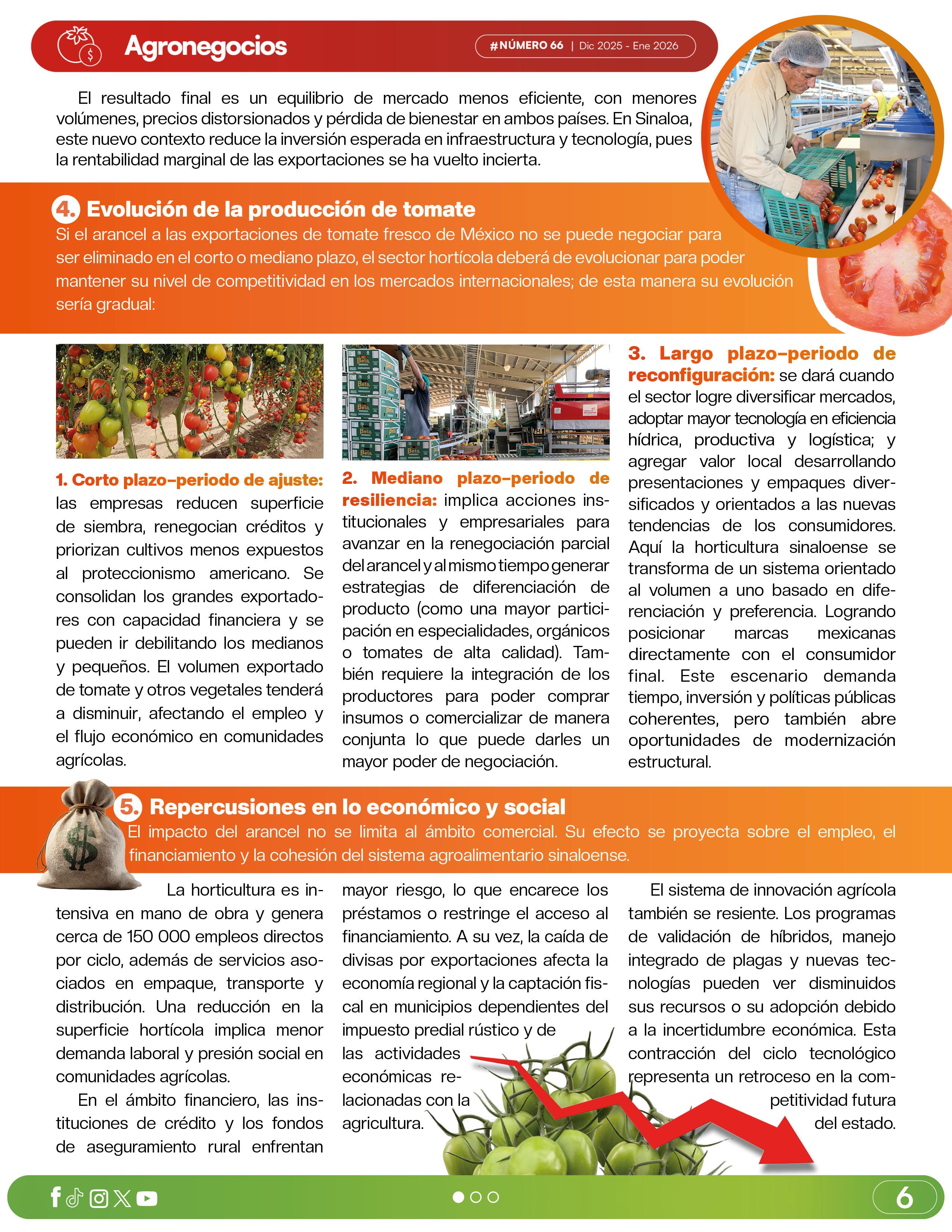 En los últimos meses, el sector agrícola mexicano ha vivido dos acontecimientos de gran relevancia: la prohibición de 35 plaguicidas y el incremento de aranceles al tomate mexicano por parte de Estados Unidos. Ambos hechos reflejan un cambio profundo en el entorno productivo y comercial del campo nacional, que exige a los productores adaptarse con rapidez a nuevas condiciones tanto internas como externas.