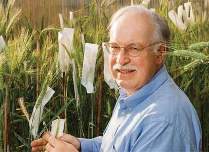 Dr. P. Stephen Baenziger works on wheat crosses in a greenhouse. Below: Drs. Baenziger and Thomas Hoegemeyer teach and conduct research as part of the University of Nebraska–Lincoln wheat-breeding team.