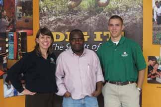 The Dig It! exhibit at the Durham Museum educates visitors about the many different kinds of soils, what minerals and organisms they contain, and how they are used in everyday life. David Glett and Ricardo Maria (graduate students of Charles Wortmann), and Sara Uttech (with the Soil Sciences Society of America) help visitors understand more about soils.