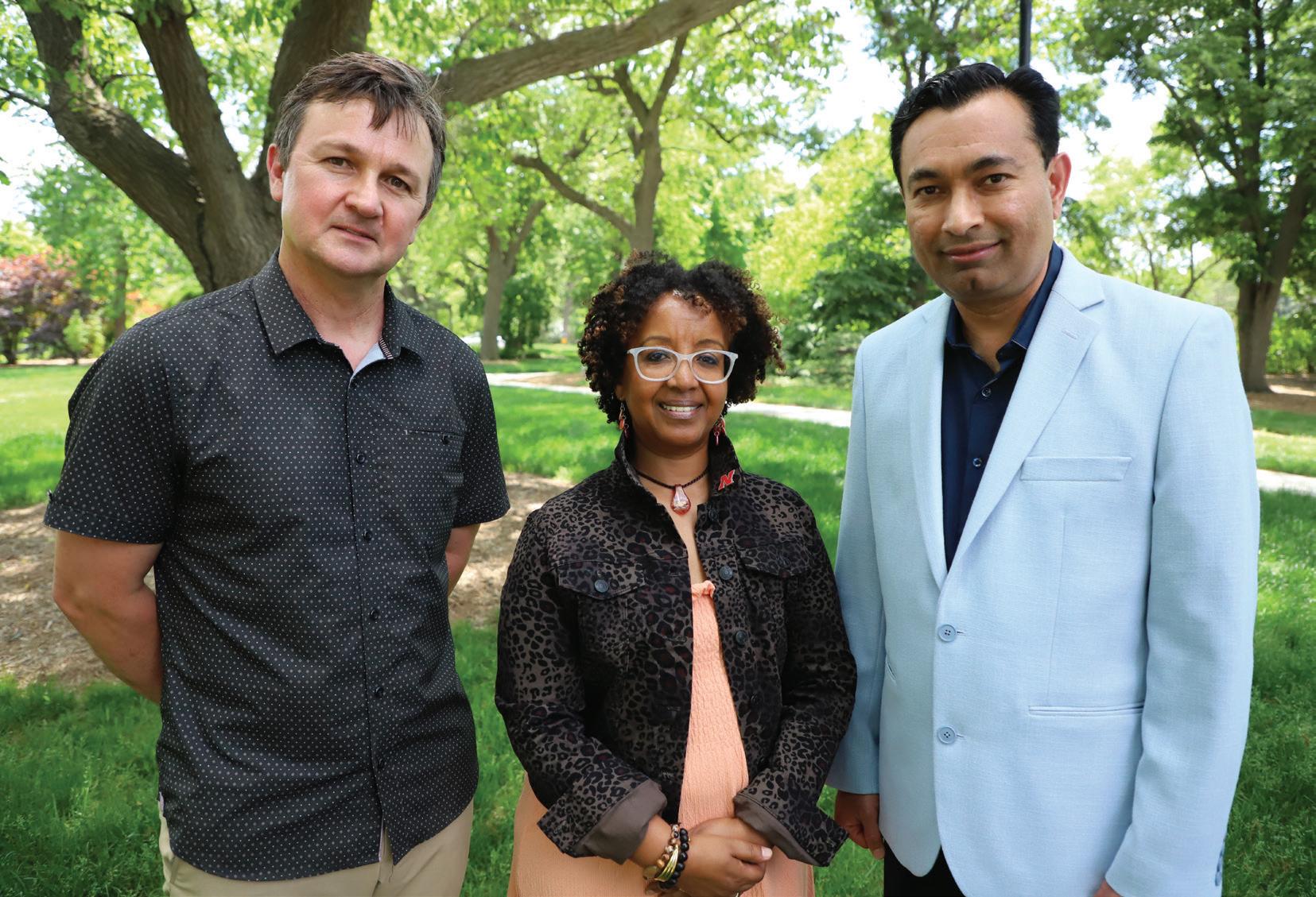Department of Agronomy and Horticulture’s David Holding, associate head (from left), Martha Mamo, head, and Amit Jhala, associate head, stand in the Earl G. Maxwell Arboretum on the University of Nebraska–Lincoln East Campus.