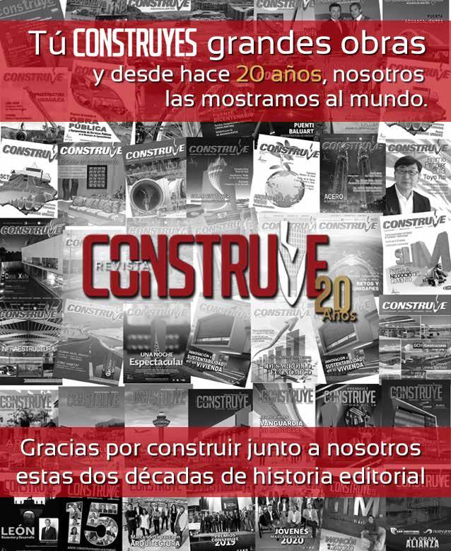 Revista Construye ® es una publicación de Corporativo GEDCA, S.A. de C.V. de distribución gratuita. Prohibida la reproducción total o parcial del contenido sin previa autorización por escrito de los editores. Los autores son responsables de sus artículos y no reflejan necesariamente el punto de vista de la empresa. IMPI ® 2434130