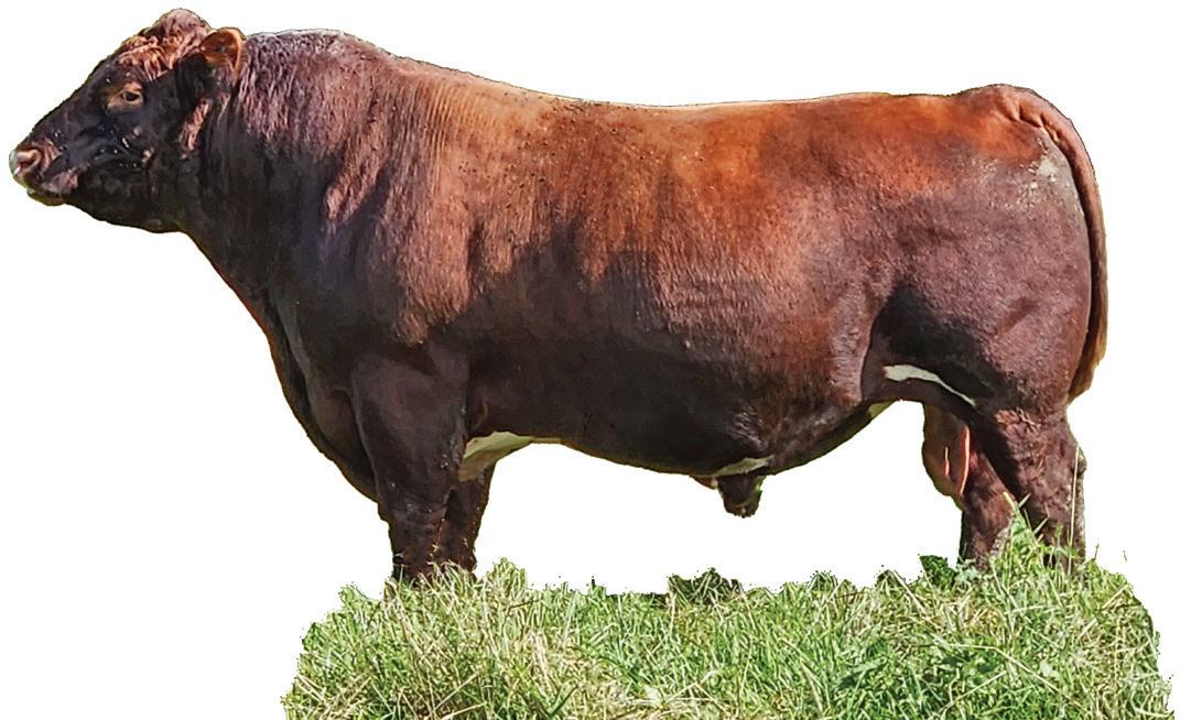 Bell M Guinness 17G is an outcross Shorthorn sire with exceptional calving ease that does not sacrifice style. He is docile, super sound, long and deep sided with an impressive muscle pattern, backed by generations of maternal excellence.