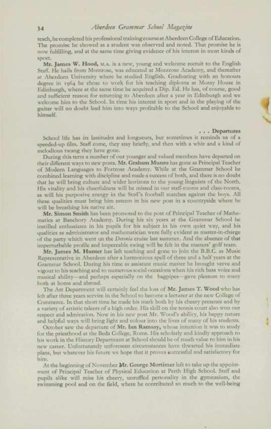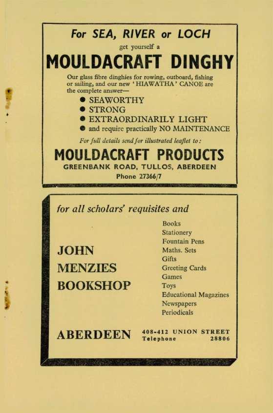 Towards the end of last session we received a gift of £80 from Mr. and Mrs. Mark Mitchell, whose two sons, Stuart and Gordon, were Duxes of the School in 1961 and 1964 respectively. The money will be used to endow a prize in Science, a subject which is less well provided for in that respect than most of its rivals in the curriculum.