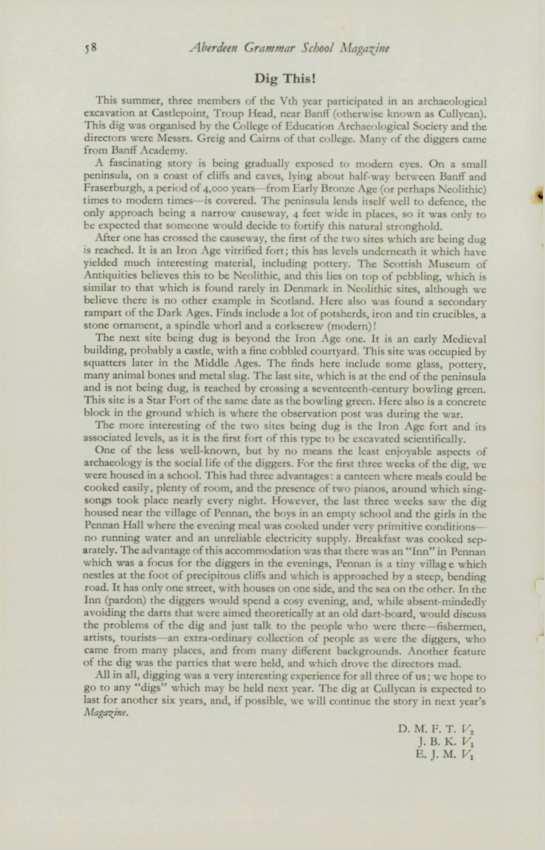 The last phase of the programme will be the connrnon of the old Library into two new classrooms. This, it is hoped, will be completed by Easter and it is my intention as soon as possible thereafter to throw the School open for one or two days to enable parents, F.P.s and others interested to visit the School and see the ne\\ accommodation for themselves. It is appreciated, of course, that many F.P.s residing forth of Aberdeen may not be able to avail themselves of this opportunity and I should like to assure all such that we shall be delighted to see them in the Schoolshould they wish to visit it \\'hen next they happen to be in Aberdeen.