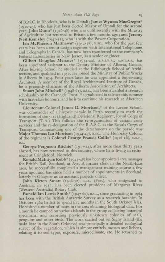 Alexander McGregor Thom (1911-22), n.sc. (Eng.), is with Associated Industrial Consultants at Carnoustie.