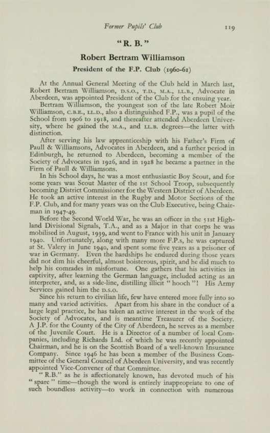 R. B. Williamson , Esq., President of the F.P. Uub (196o-61)