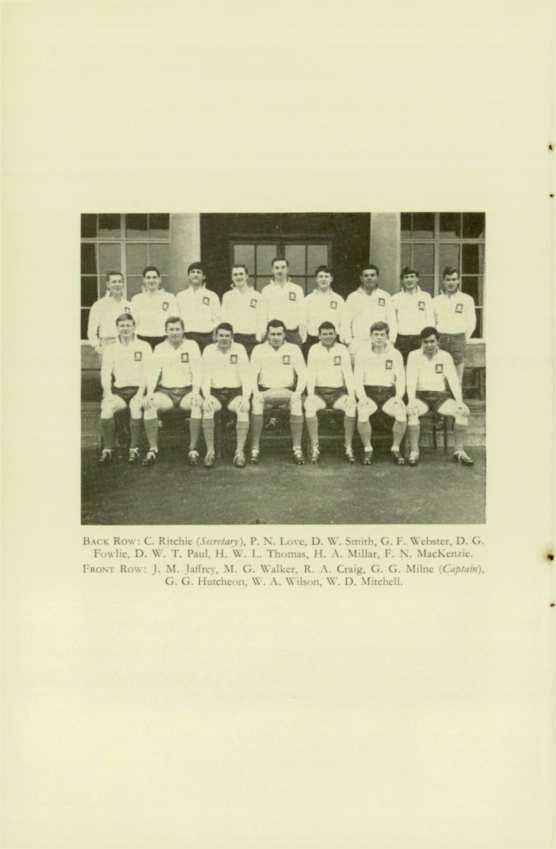 ISl XI Captai11,A. II Hampton Viet-Captain, J. Drummond 2nd XI Captam, A. Fyall Vi<t-Captain,P. Donald 3rd Xl Capta111, R. Arthur Viet-Captain, D Bruce Surttary, A. Esslemont Trtasurtr, D Ross