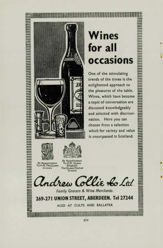 One of the stlmulat lng trends of the times Is the enlightened approach to the pleasures of the table Wines, which have become a topic of conversation are discussed knowledgeabl y and select ed with discri mlnation . Here you can choose from a select ion which for variety and value Is unsurpassed In Scotland .