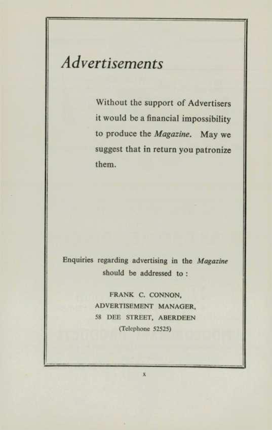 Without the support of Advertisers it would be a financial impossibility to produce the Magazine. May we suggest that in return you patronize them.