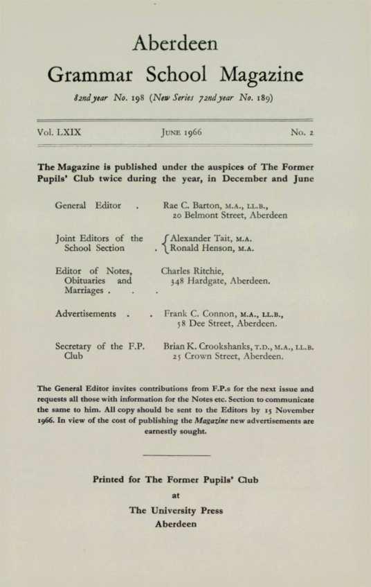 Brian K. Crookshanks, T.o , M.A., LL B 2.5 Crown Street, Aberdeen.