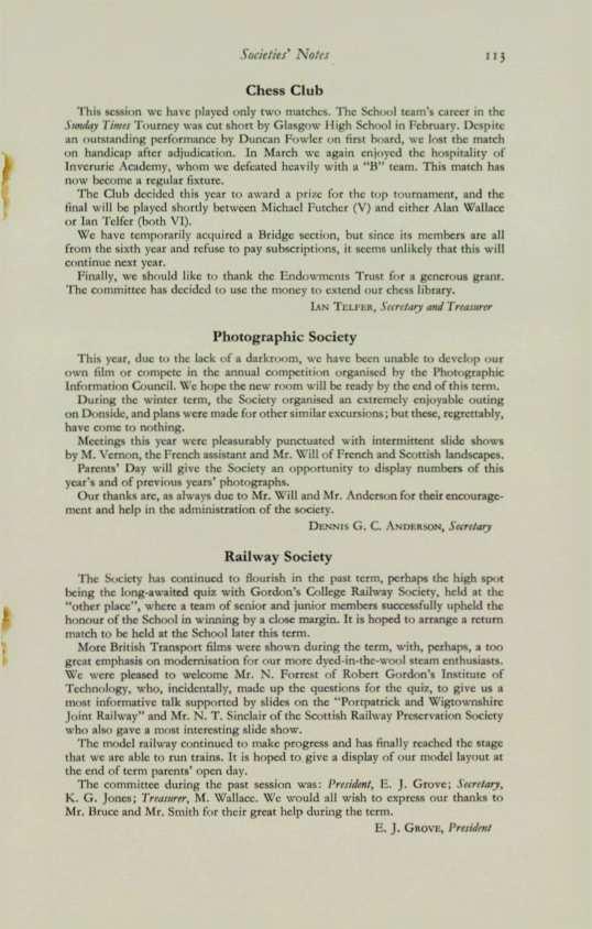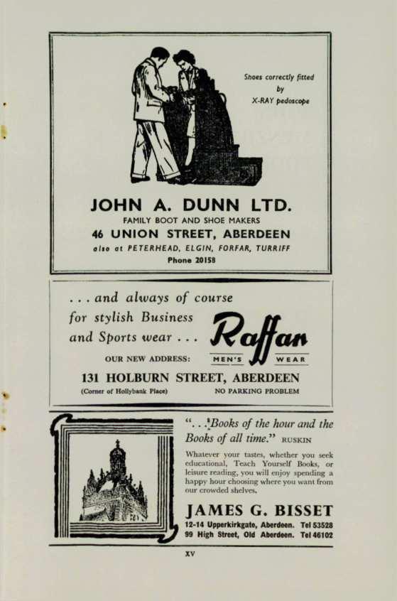 The past season, although not the most successful of recent years, proved co be very rewarding for the Club. The 1st XI were runners-up in their league to Academy F.P.s who are the most improved side in the Nonh District; the znd XI finished runners-up to Ruthrieston Ramblers in their league; and the 3rd XI again were runners-up co Ruchrieston "B" after their usual deciding last game of the season.