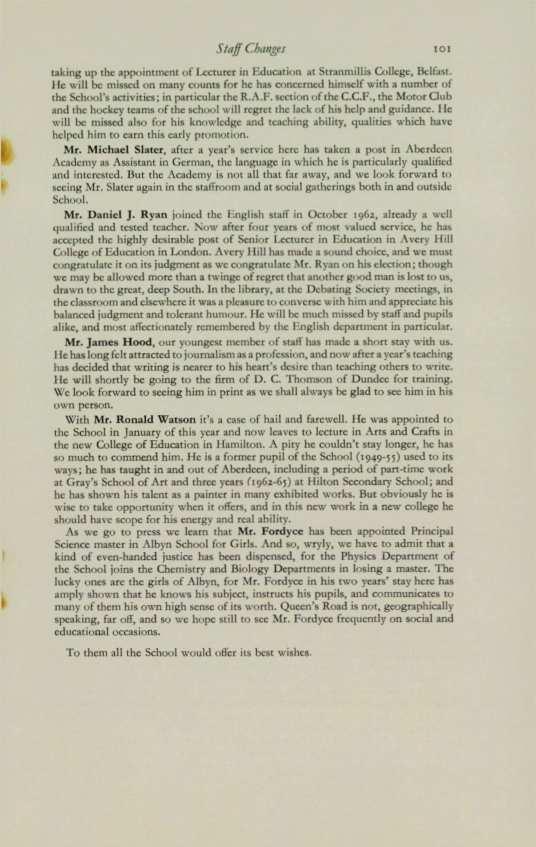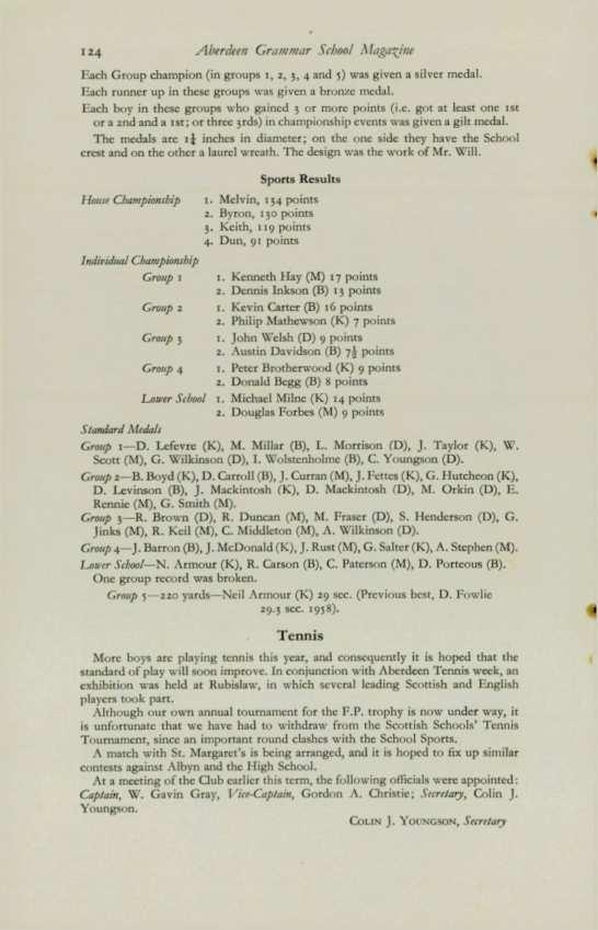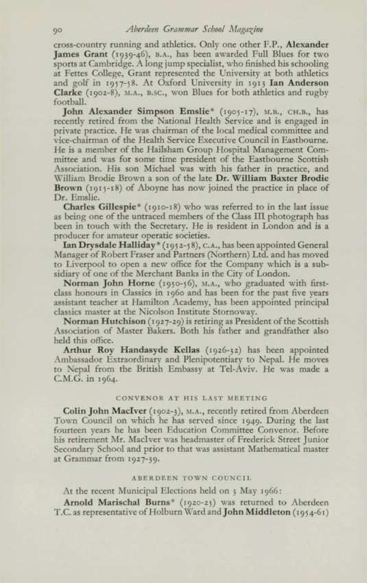 ScoTT, James 'orman Gallic (1959-65), 12. Salisbury Terrace, Aberdeen.
