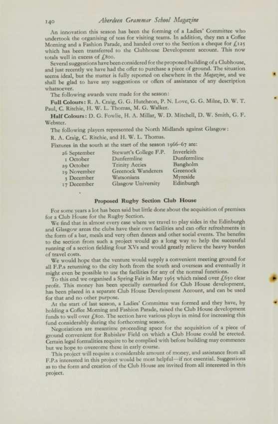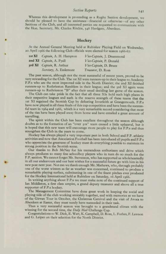 Ac the Annual General ,'\lceting held at Rubislaw Playing Field on \'i'ednesday, 20 April 1966the following Club officialswere elected for season 1966-67:
