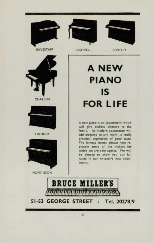 A new piano is an investment which will give endless pleasure to the family. Its modern appearance will add elegance to any room-a really practical expression of good taste The famous names shown here represent some of the makers for which we are sole agents We will be pleased to show you our full range In our extensive new showrooms.