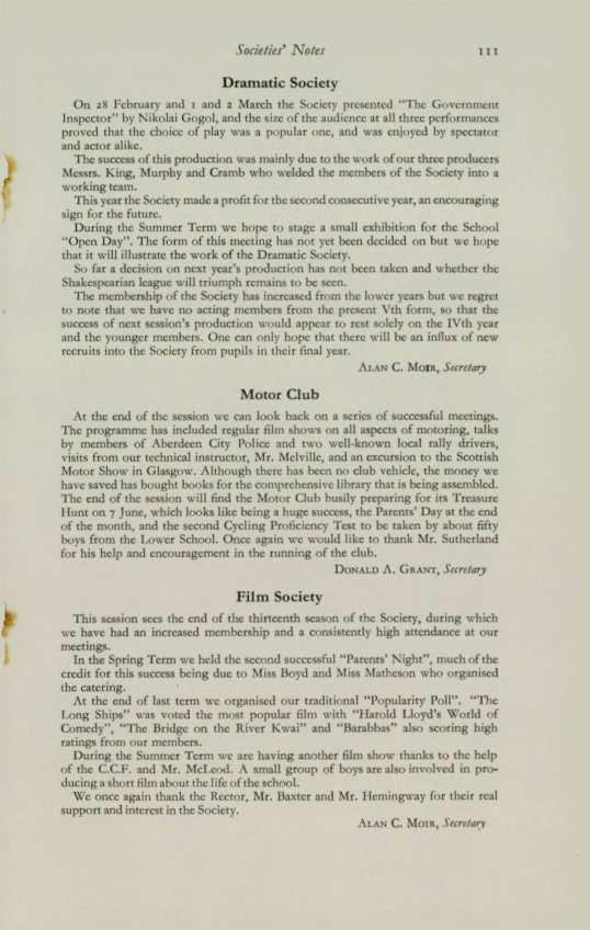 The .Management Committee have done great work in keeping che social and playing side of the club working amicably together, and wJth memoncs as we have of the Girvan Tour in October, the Christmas Carnival and the visit of Avoca to Aberdeen at &aster, they must surely have succeeded in their task.