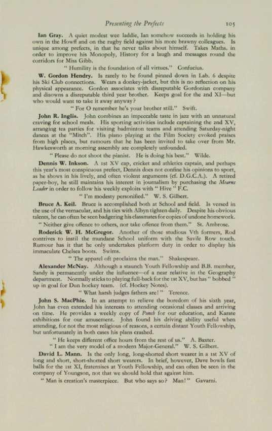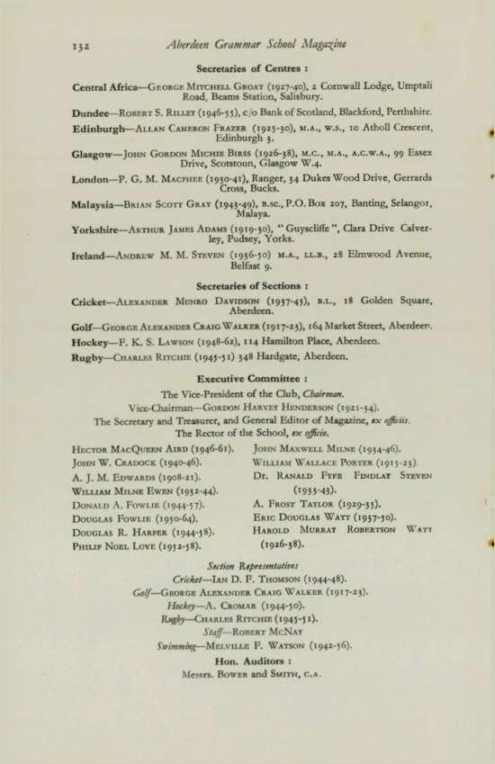 ANNAND,Dudley Nicolson (1938-51),M.A., LL.11.,77 Forest Avenue, Aberdeen. B&IITAIN,David Anthony (1943-49), M.A., LL.B., 2 Circus Gardens, Edinburgh. DELEuv£RE,George Harley (1957-58),P.O. Box 338, Kitzmiller, Maryland, U.S.A. LAMB,Leonard McKewney (1942-45), 27 Harold Road, Burton-le-Clay, Beds. LESLIE,David Carnegie (1947-62), 58 Bonnymuir Place, Aberdeen. MACRAE,Edward J. (1934-47), 52 Springfield Avenue, Aberdeen. M1c1m:, Charles Alexander (1946-6o), 110 Queen's Road, Aberdeen. M1c11m,John Charles Alexander (1944-58), 110 Queen's Road, Aberdeen. ScoRGIE,Leonard Dunn (1946-59), 144 Forest Avenue, Aberdeen. STEPHEN,Henry Gordon (1920-30), Villaficld, Bieldsidc, Aberdeenshire.