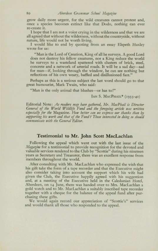Testimonial to Mr. J. S. MacLachlan