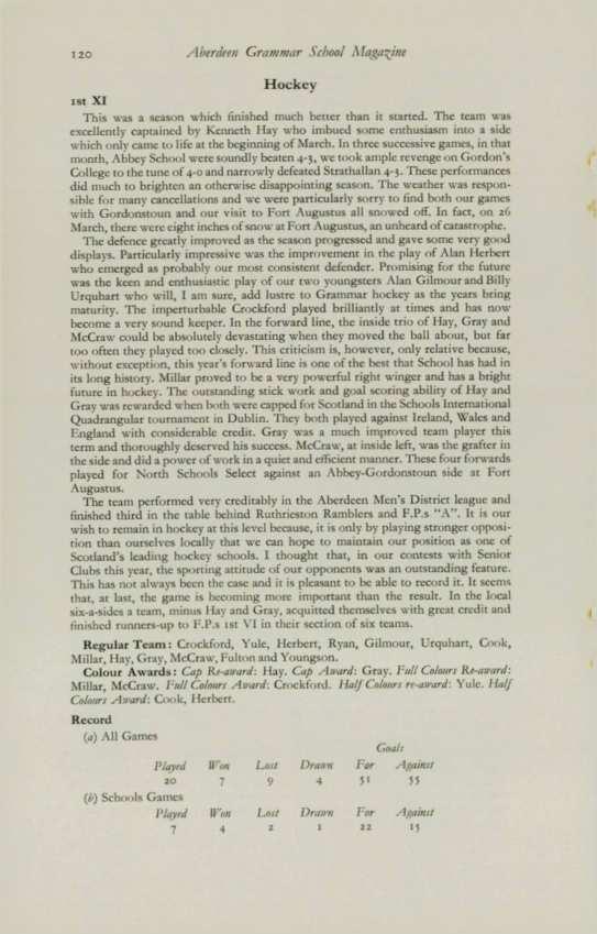 Hockey has always played a very important part in both School and F.P. athletic activities and now that Association Football has been introduced all pupils and F.P.s who appreciate the greatness of hockey must do everything possible to maintain its strong position in the Scottish scene.