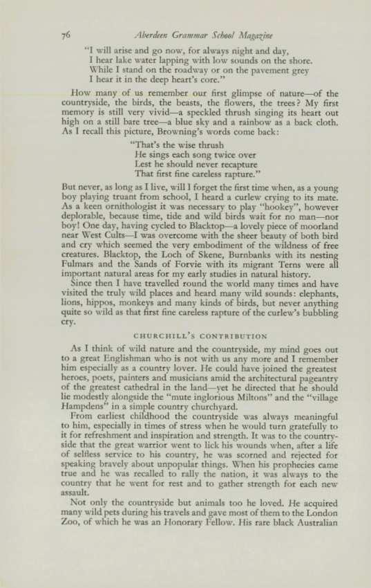 As I think of wild nature and the countryside, my mind goes out to a great Englishman who is not with us any more and I remember him especially as a country lover. 1[e could haye joined the greatest heroes, poets, painters and musicians amid the architectural pageantry of the greatest cathedral in the land-yet he directed that he should lie modestly alongside the "mute inglorious Miltons" and the "village 1Iampdens" in a simple country churchyard.