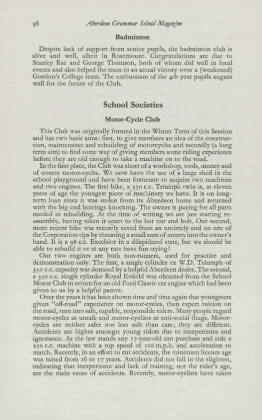 Printed for The Former Pupils' Club at The University Press Aberdeen