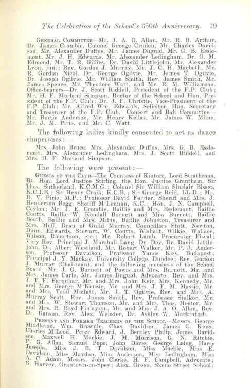 GE1'"ERAL Co1nrrTTEE - :\Ir. J. A. 0. Allan , }lr. R. B. Arthur. Dr. James Crom hie. Colonel George Cruden, :'lfr. Charles Davidson, :Mr. Alexander Duffus. :\Ir. James Duguid, ~Ir. G. B. Esslemont, }fr. J. H. Edwa rds. i\lr. Alexander Ledingham , Dr. G. M. Edmond. :\Ir. T. R. Gillies, Dr. David Littlejohn, }Ir. AlC'xander Lvon, jnn.: Rev. Gordon J. }Inrray. }lr. J. C. H. Macbeth, Mr. R'. Gordon :\"icol, Dr. Georfi;e Ogilvie , }fr. James T. Ogilvie, Dr. Joseph Ogilvie, }fr. William Smith, Rev. James Smith, Mr. James Spence. }Ir. Theodore iYatt, ancl }lr. R. l\I. "·it1iamsoJ1. Office-bearers-Dr. J. Scott Riddell. President of the F.P. Club: l\fr. H. F. :illorland 8impson. Rector of the School and Hon. President of the F.P. Club; Dr. J. F. Christie. Yice-Presiclent of the ~'.P. Clnh: :\Ir. Alfred Wm. Echrnrds , Solicitor. Hon. Secretary and Treasurer of the F.P. Club. Concert and Ball Committee}fr. Bertie Anderson , }Ir. Henry Kellas. }l r. Jame, iY. Milne. }Ir J. :\I. P irie. and }Ir. C. \Yatt.