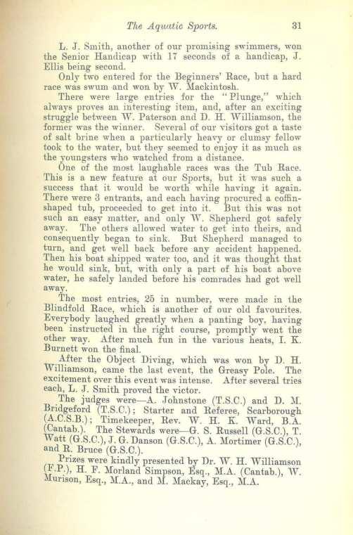 D. H. w. WILLIAMS0:S. (Swimming). :i\L M. MACRAE. W. W. JAMESOK,
