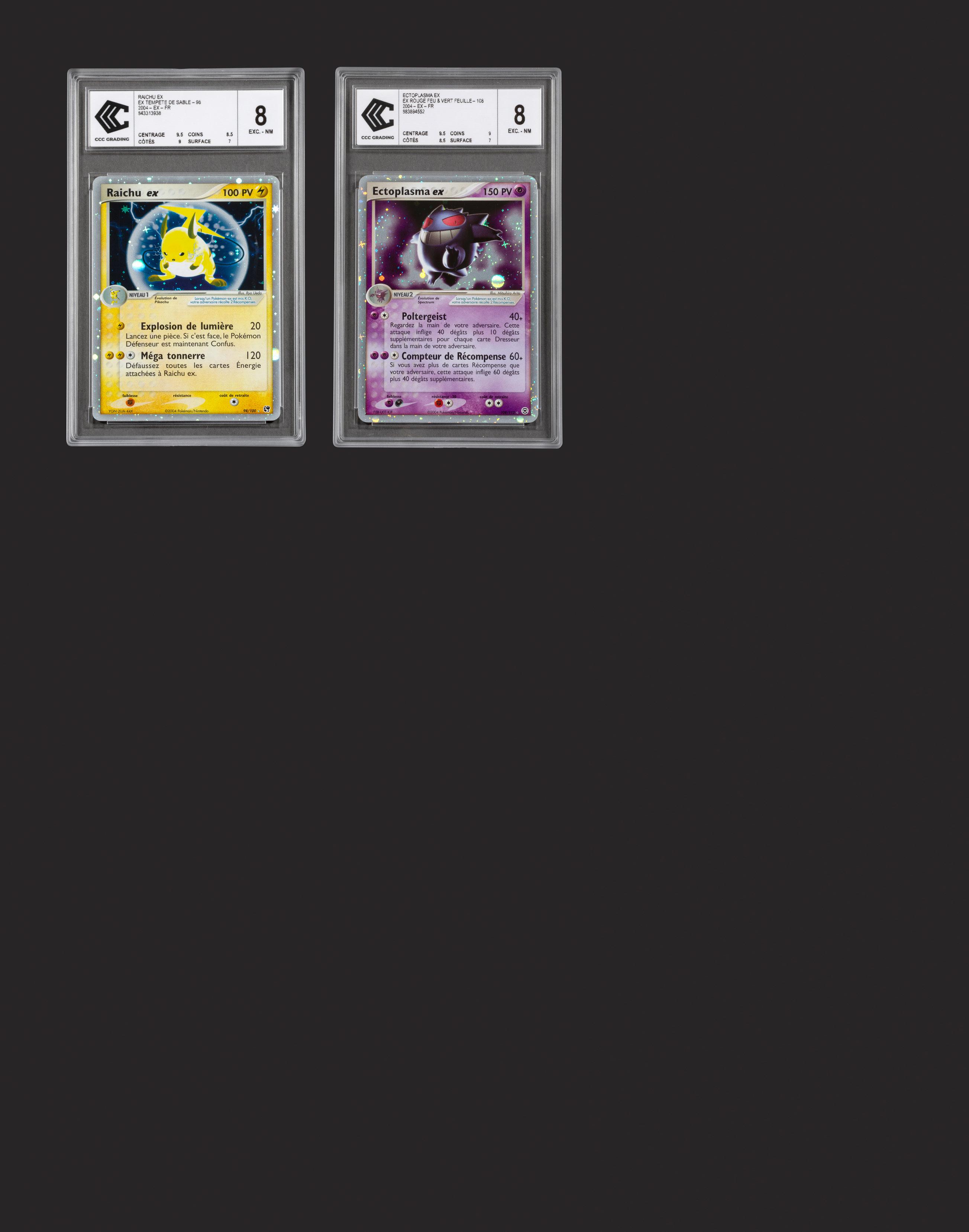 Grading – Le grading consiste à authentifier une carte ou un objet scellé puis lui donner une note pour son état de conservation. L’objet est ensuite scellé par ultrasons dans une capsule plastique hermétique.