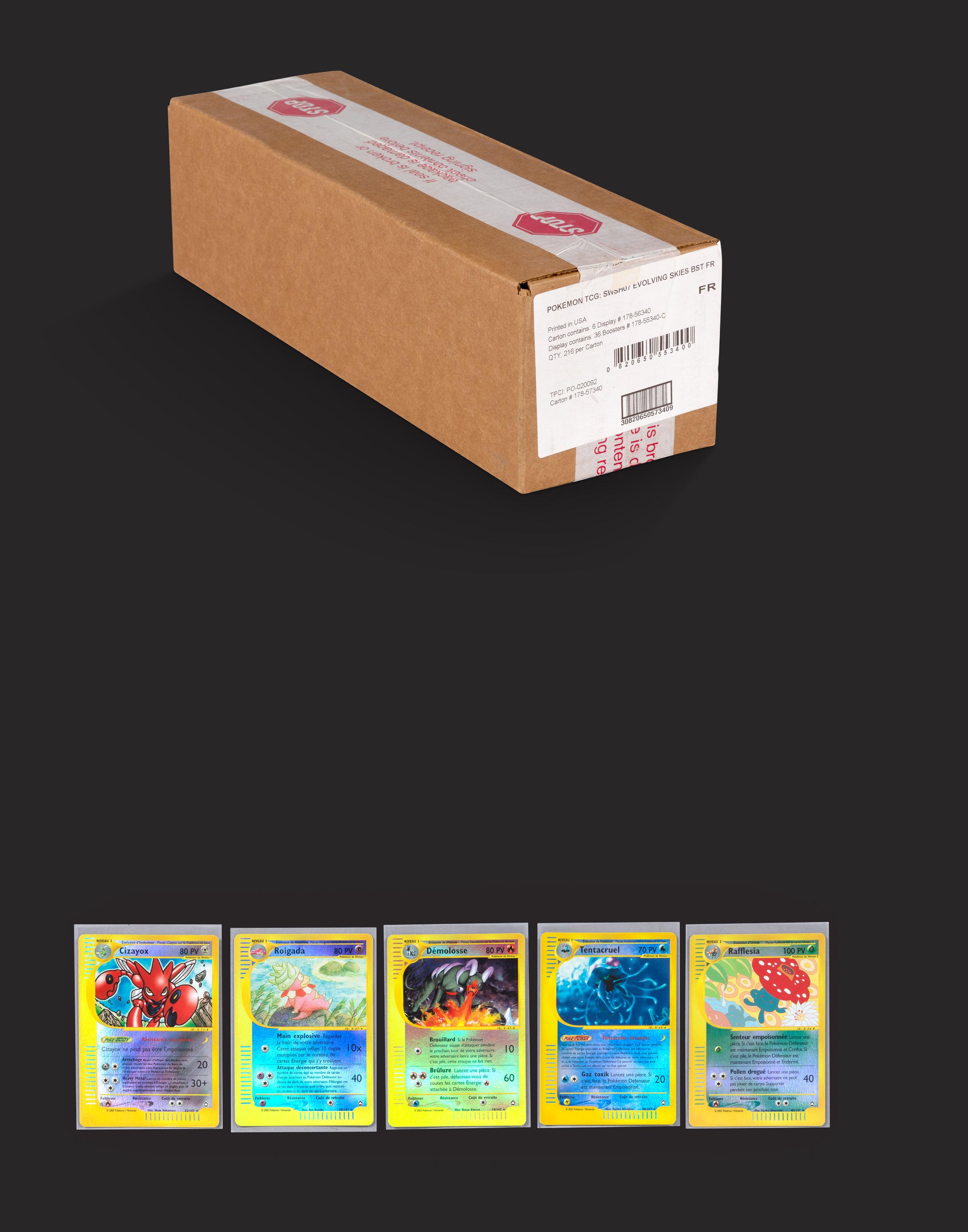 Case – Il s’agit du carton dans lequel est rassemblé toutes les boîtes de booster (box). Certaines marques ou éditions renferment des collections entières dans une case. D’autres garantissent une proportion de cartes spéciales par Case.