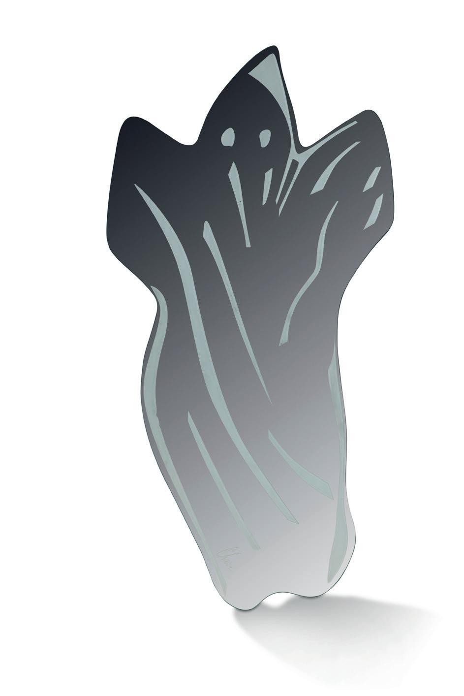 En verre translucide, à décor émaillé polychrome de feuilles et de légumes, reposant sur une base circulaire.