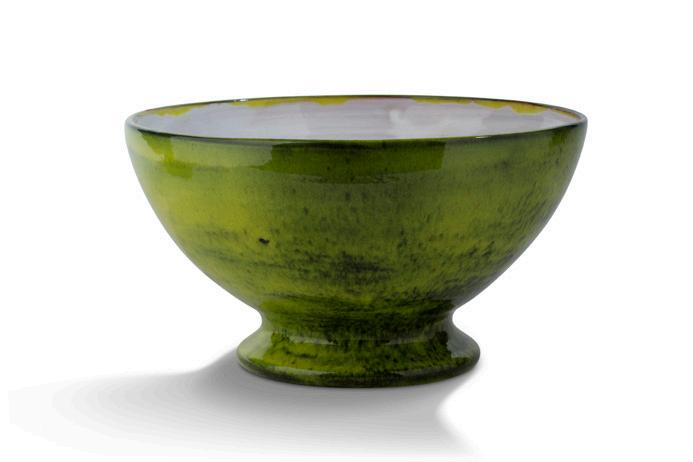 En faïence émaillée, à décor d'un coq dans un paysage floral, tons bruns sur fond jaune orangé.