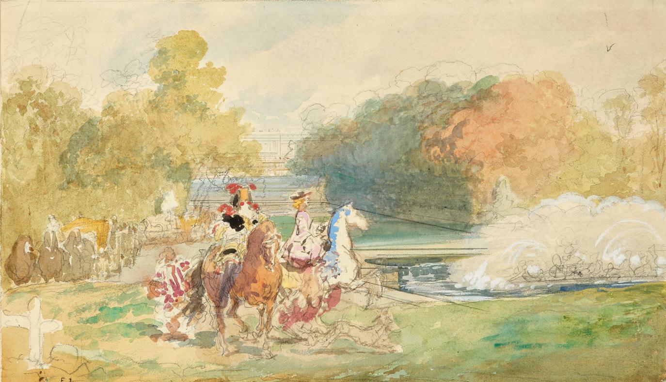 Étude de rue ; Madame de Montespan (1640-1707) et Madame de la Vallière (1644-1710) ; Étude d’une stalle d’écurie ; Étude de la croupe d’un cheval ; Étude de cavaliers s’exerçant