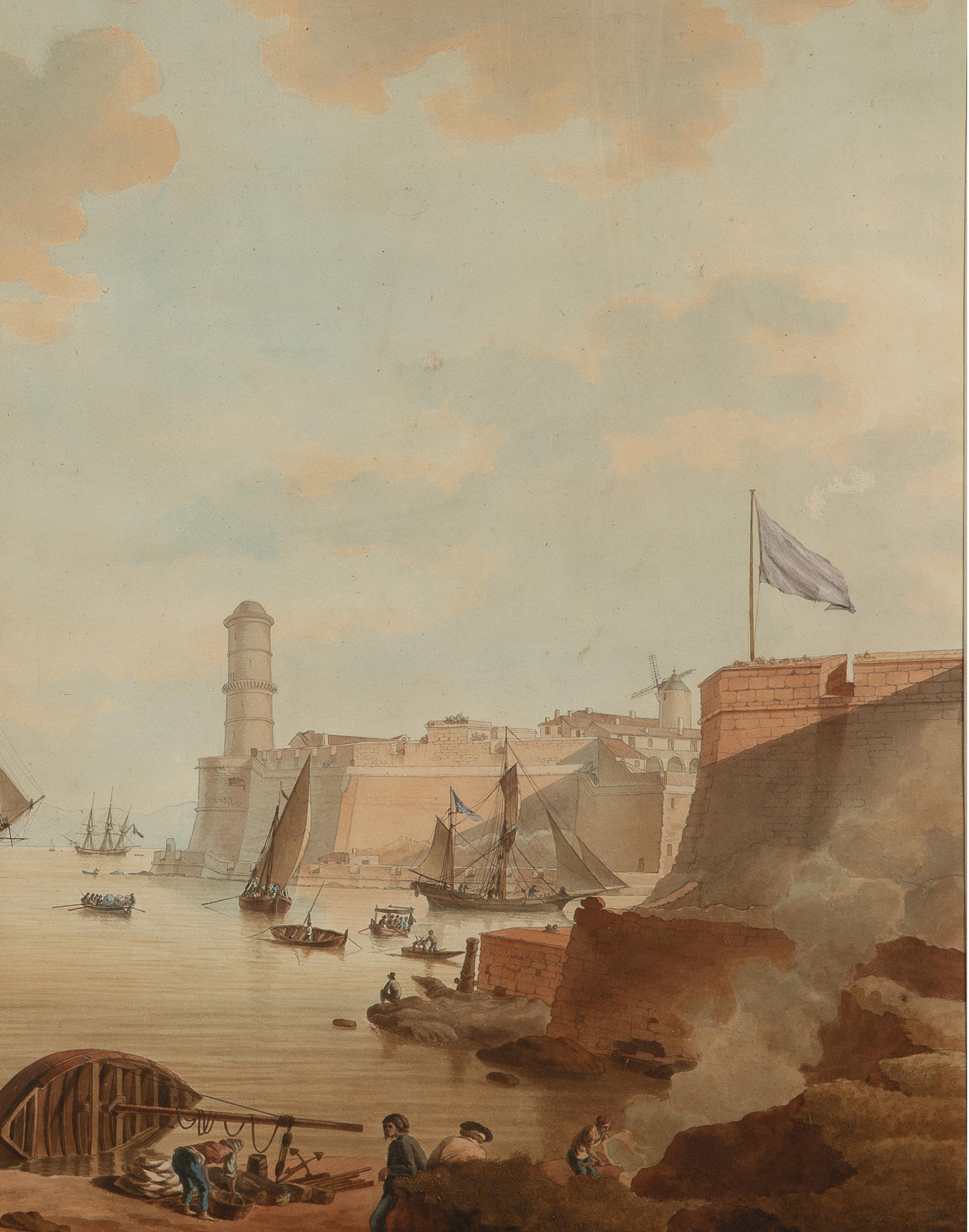 Pierre noire, aquarelle et rehauts de blanc Monogrammé en bas à gauche E. L. (pour les 1 et 2) 10,9 x 14,4 cm ; D. : 11,4 cm ; 12,4 x 10 cm