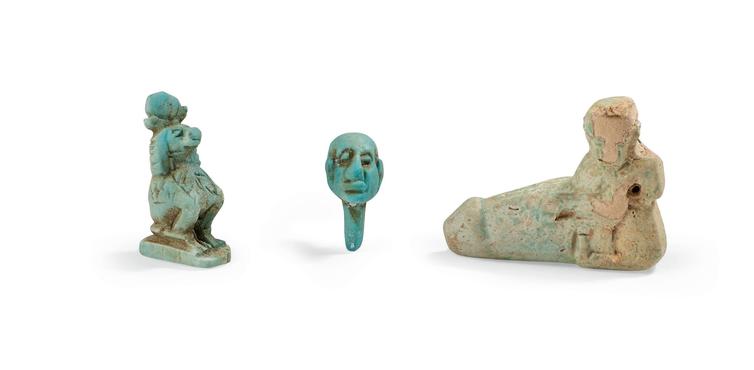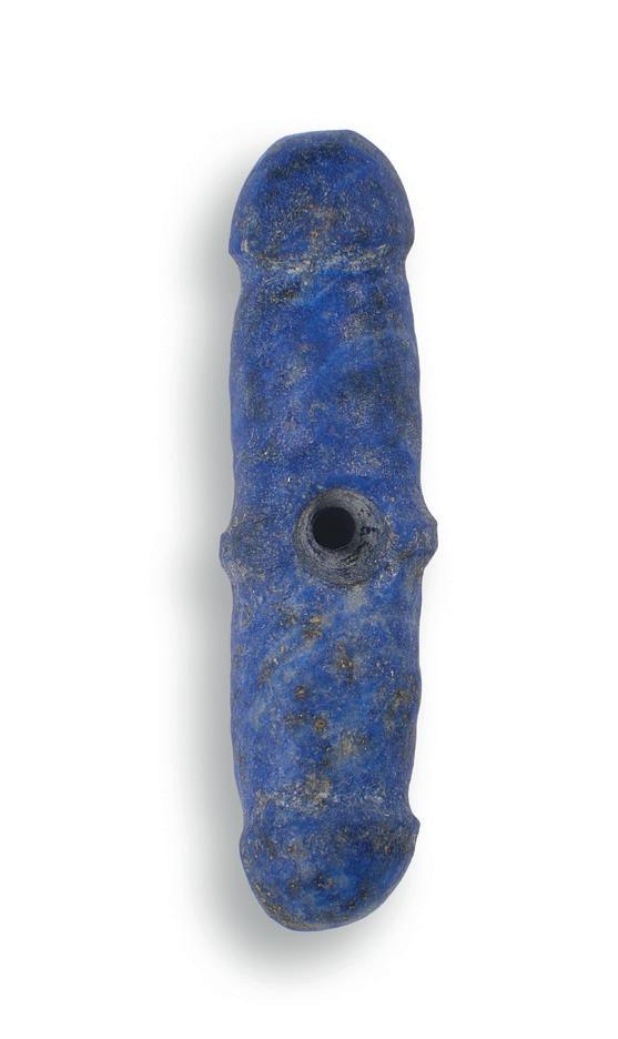 - Figurine érotique d’homme au pénis hypertrophique. Bélière à l’arrière. Faïence siliceuse à glaçure turquoise. Égypte, Époque Ptolémaïque.