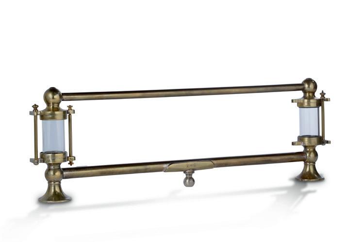 pour l’étude de la conductibilité thermique des corps. Cuve en cuivre et laiton sur laquelle sont fixées cinq tiges en laiton, cuivre, aluminium, fer et plomb, la poignée en bois noirci.