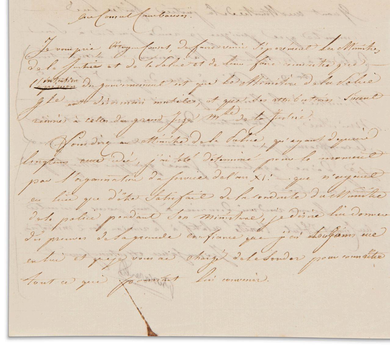 À la mort de l’ancien Consul puis Archichancelier de l’Empire Cambacérès, le 8 mars 1824, ses papiers sont saisis par ordon nance royale.