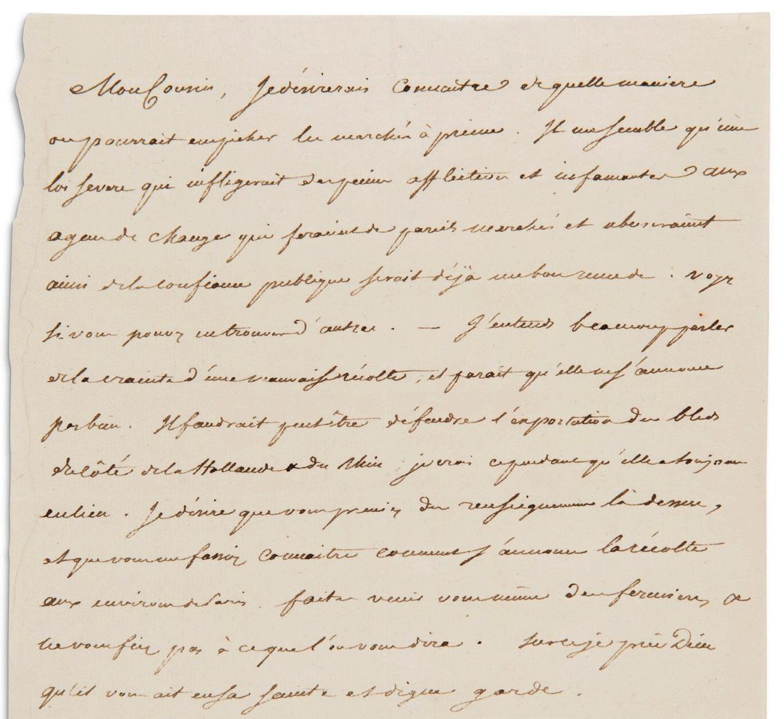 Il lui envoie « un arrêté que je crois utile de prendre. J’ai reçu une lettre extrêmement prévenante de l’Empereur de Russie [Paul I er]. Il est bon que la connaissance de cet arrêté arrive promptement en Russie afin de diminuer un peu la peine que fera au Commerce Russe l’ordre du Roi d’Angleterre »…