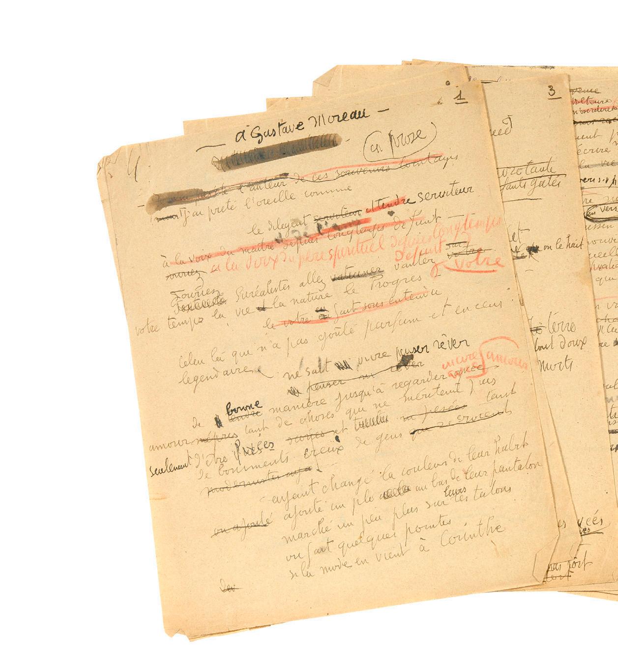 Poème en prose à la mémoire de Gustave MOREAU, abondamment raturé et corrigé :