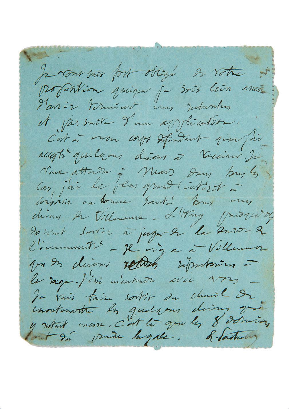 « Mon cher ami, je vous renvoie votre parapluie et vous pire de me confier votre petit paravent japonais j’en aurai le plus grand soin »… [La lettre est peut-être relative au fameux portrait de Zola par Manet, dans lequel figure en arrière-plan un paravent japonais.]