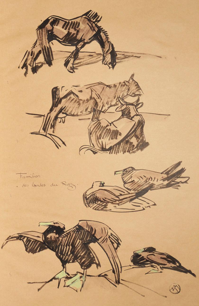 DESSIN original avec dédicace autographe signée, Prague mai 1935 ; encre sur esquisse au crayon ; 21 x 17 cm.