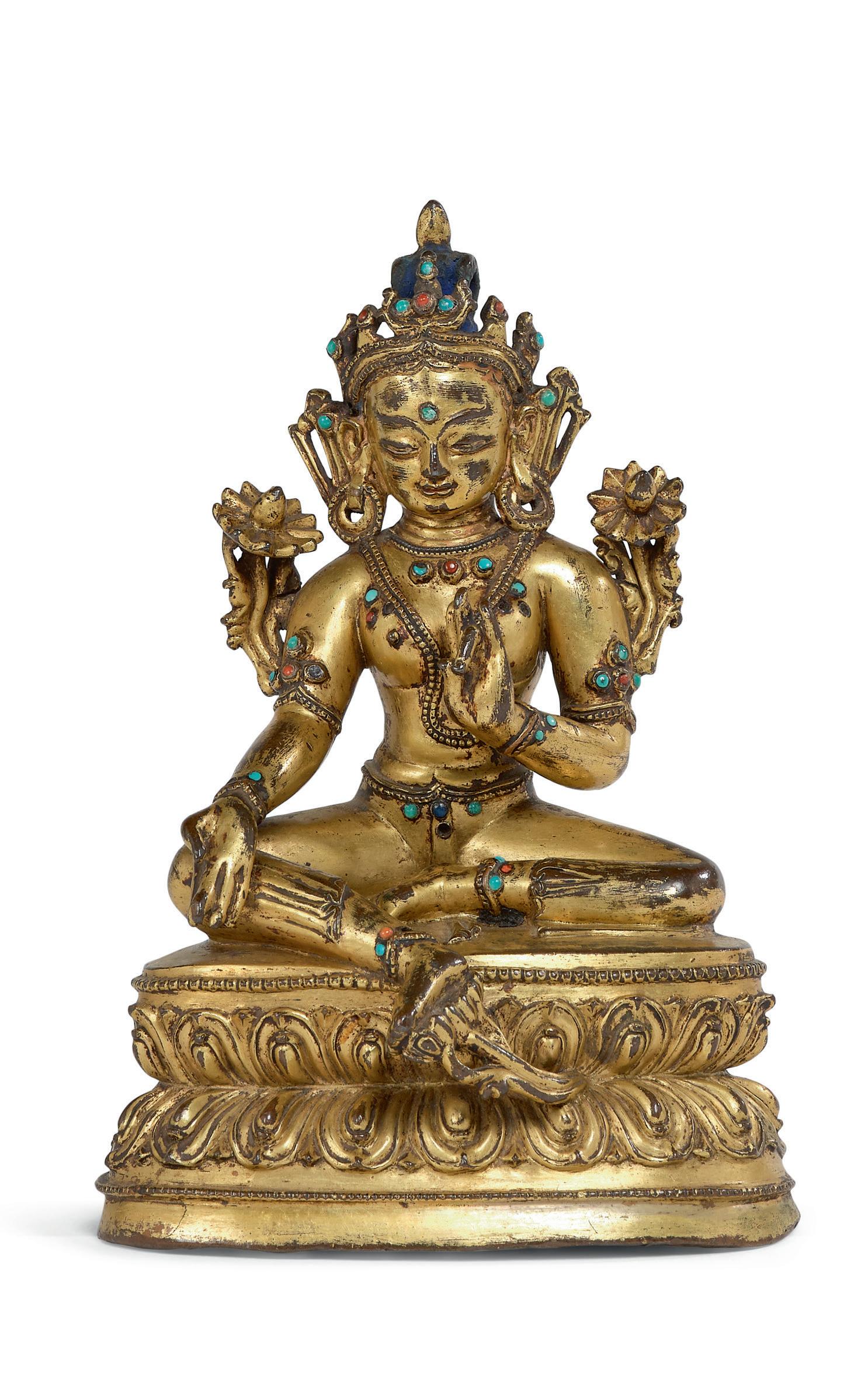 QING DYNASTY, 18th CENTURY A GILT-BRONZE FIGURE OF AMITAYUS